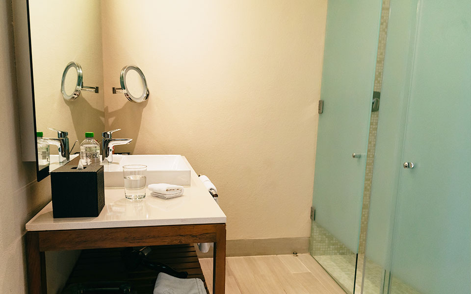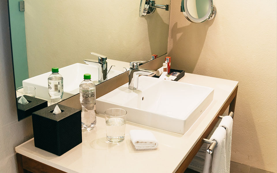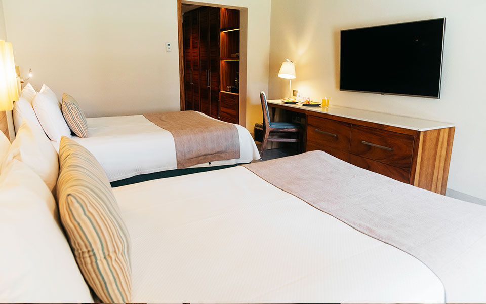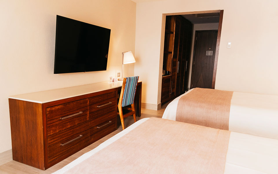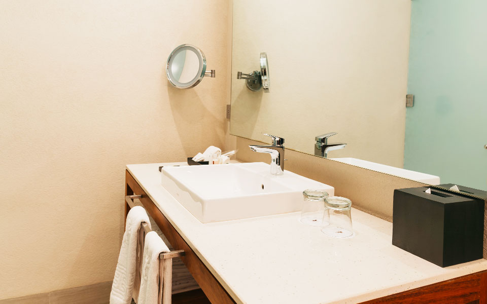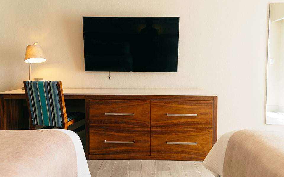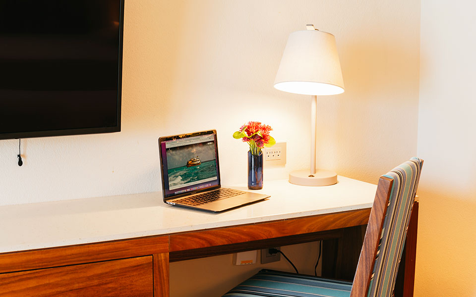 Traveling for work? This room is equipped for you, too. It features a vanity-style desk that creates the perfect setting to stay focused, combining both functionality and style in one place.